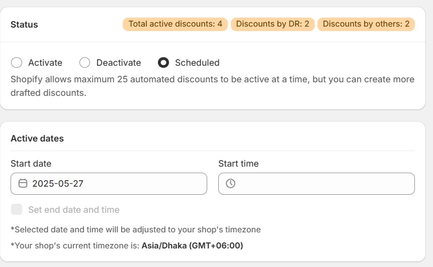 Shopifyの組み込みツール(またはサードパーティ製アプリ)を使えば、割引を自動で適用できます。「3点購入で30%オフ」といったルールを設定し、開始時間と終了時間を設定すれば、プロモーションコードの入力を省くことができます。
